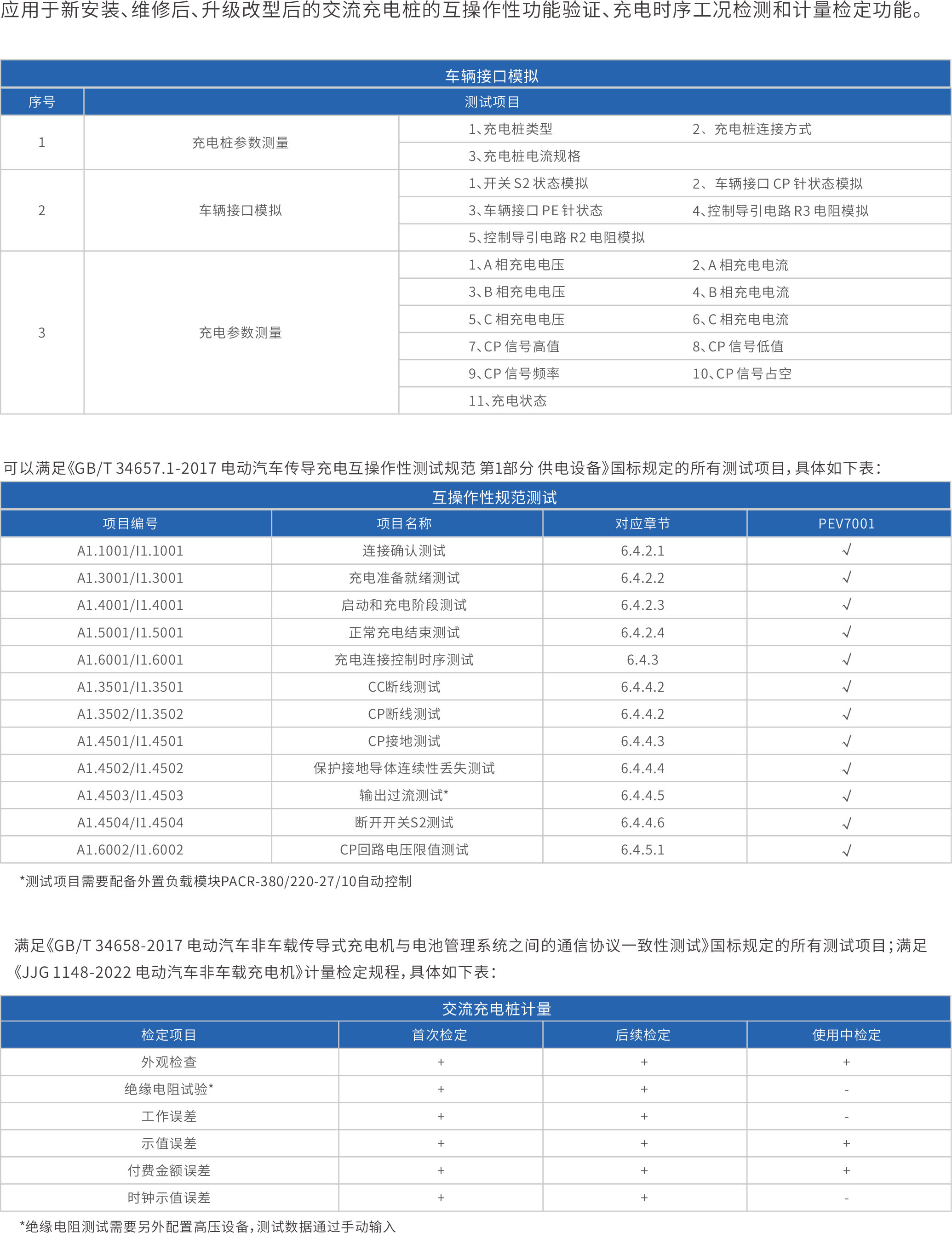 便攜式交流充電樁測試計量綜合儀PEV7001,具有互操作性測試以及計量檢定功能測試。具有精度高、體積小、重量輕,便于攜帶等特點,可滿足實驗室及現(xiàn)場等多種場合計量檢測與性能測試。分析儀具有計量模塊,滿足《JJG 1148-2022 電動汽車交流充電樁》計量檢定規(guī)程,可檢定電壓誤差、電流誤差、功率誤差、工作誤差、示值誤差、付費金額誤差、時鐘示值誤差。內(nèi)置軟件功能模塊,可實現(xiàn)《GB/T34657.1-2017 電動汽車傳導充電互操作性測試規(guī)范第1部分供電設備》測試項目。帶有2個63A標準充電槍插座,引腳定義滿足GB/T 20234.2-2015中規(guī)定要求。