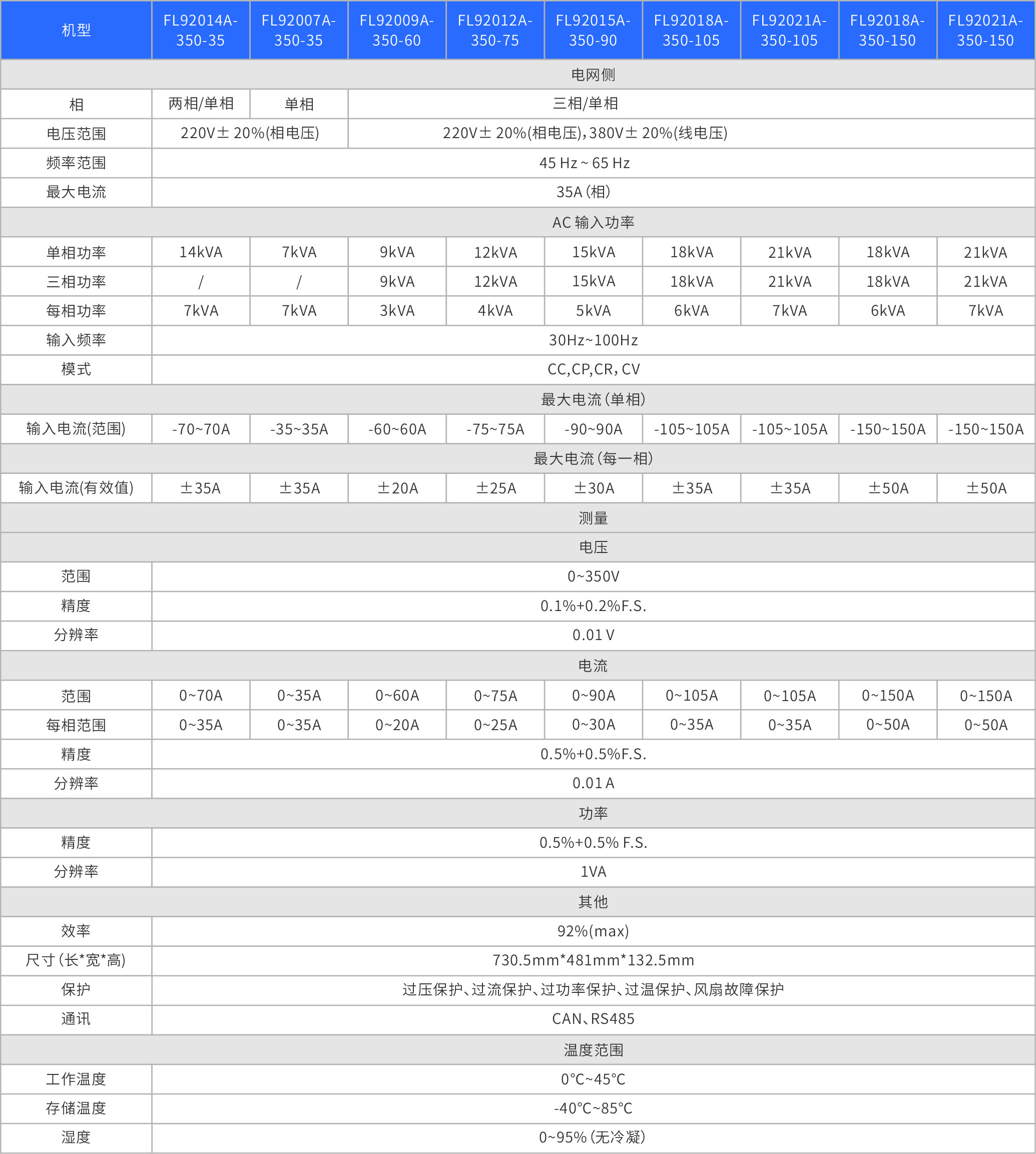 雙向交流電源FL92000A系列,采用單/三相PFC回饋式設(shè)計,純數(shù)字化PWM整流技術(shù),功率因數(shù)高,對電網(wǎng)污染小,輸出精度高,動態(tài)響應速度快,可將能量高效回饋至電網(wǎng),省電節(jié)能。廣泛應用于工廠、科研機構(gòu)、實驗室、高校等機構(gòu),可作為發(fā)電機組、變頻器、UPS/EPS、交流電源、AC轉(zhuǎn)換器等交流系統(tǒng)產(chǎn)品的老化、測試、性能檢測,以及DC-AC、AC-AC電源轉(zhuǎn)換器測試。